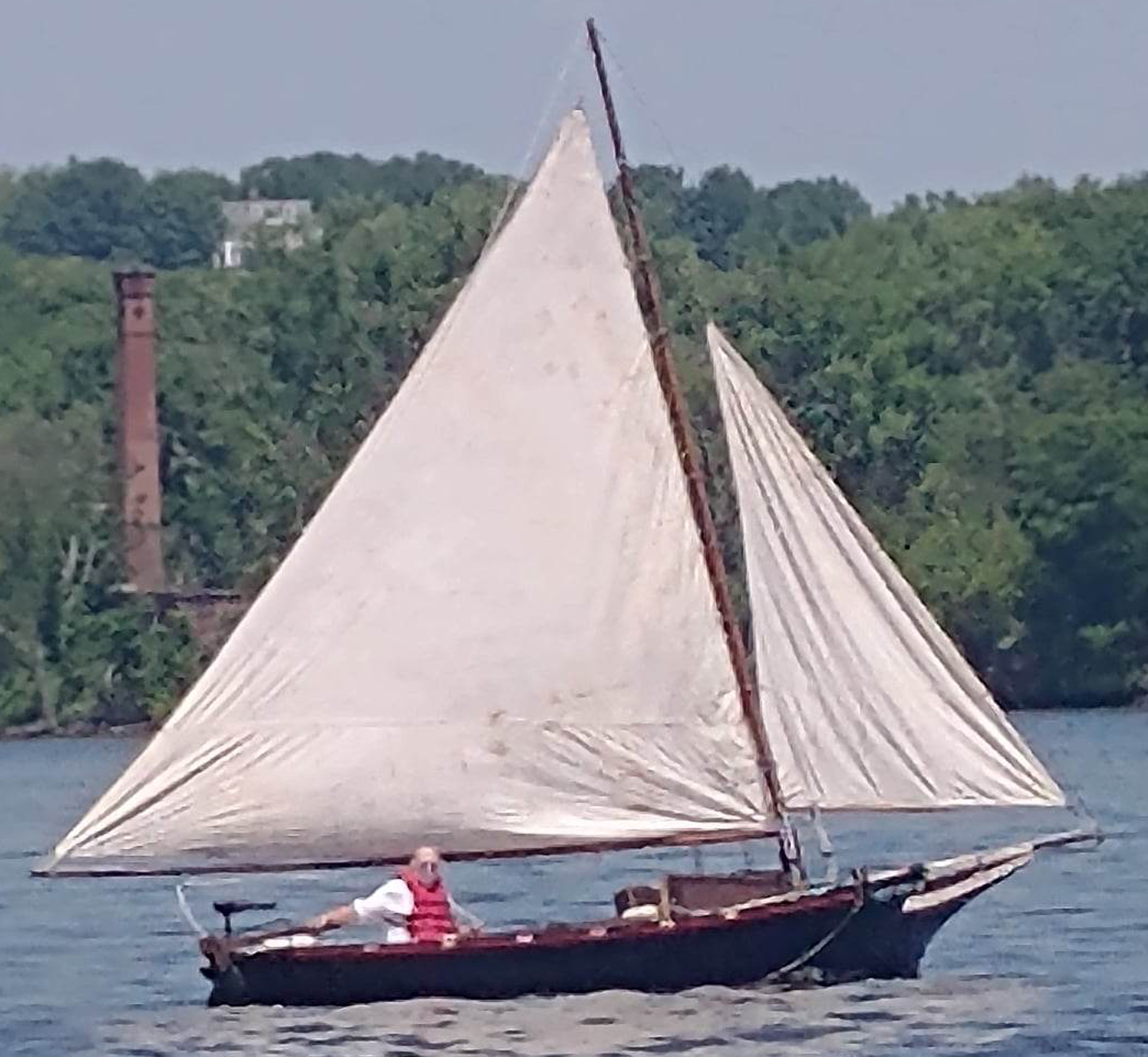 I found the boat to be a bit tender, and I once flipped it over. The sails in question (see above) were from Dabbler Sails. Stuart Hopkins, now deceased, was owner of the loft on the Eastern Shore of the Chesapeake. I was going to use Dacron, but Stuart said he had a set of cotton sails from an old skipjack and wondered if the cotton would be more appropriate for a boat of that vintage. I agreed, and he donated them for just the cost of shipping. They were heavier, but they did look the part of an original pirate.