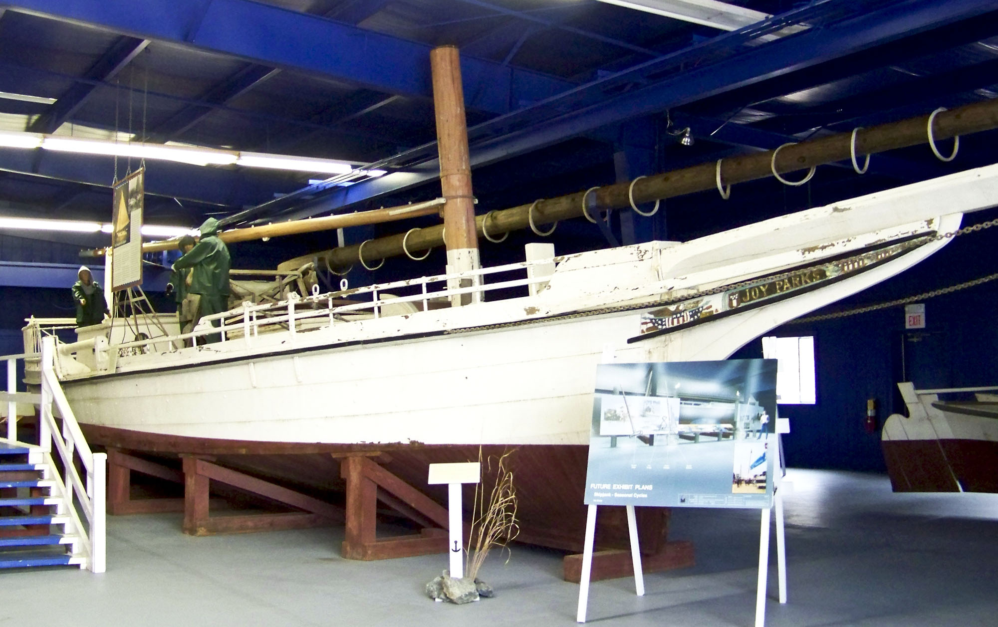 Joy Parks’ dredging days ended in 1968 when Dan sold her to the Harry Lundeberg School of Seamanship in Piney Point, Maryland, on the western shore of the Bay. She remained on the water at the school until 1975, when she was finally hauled out and stored in the school's boatshed, where she was refurbished by the school's shipwrights. In 2004, she became an indoor exhibit at the Piney Point Lighthouse Museum and Park, on permanent loan from the Harry Lundeberg School.