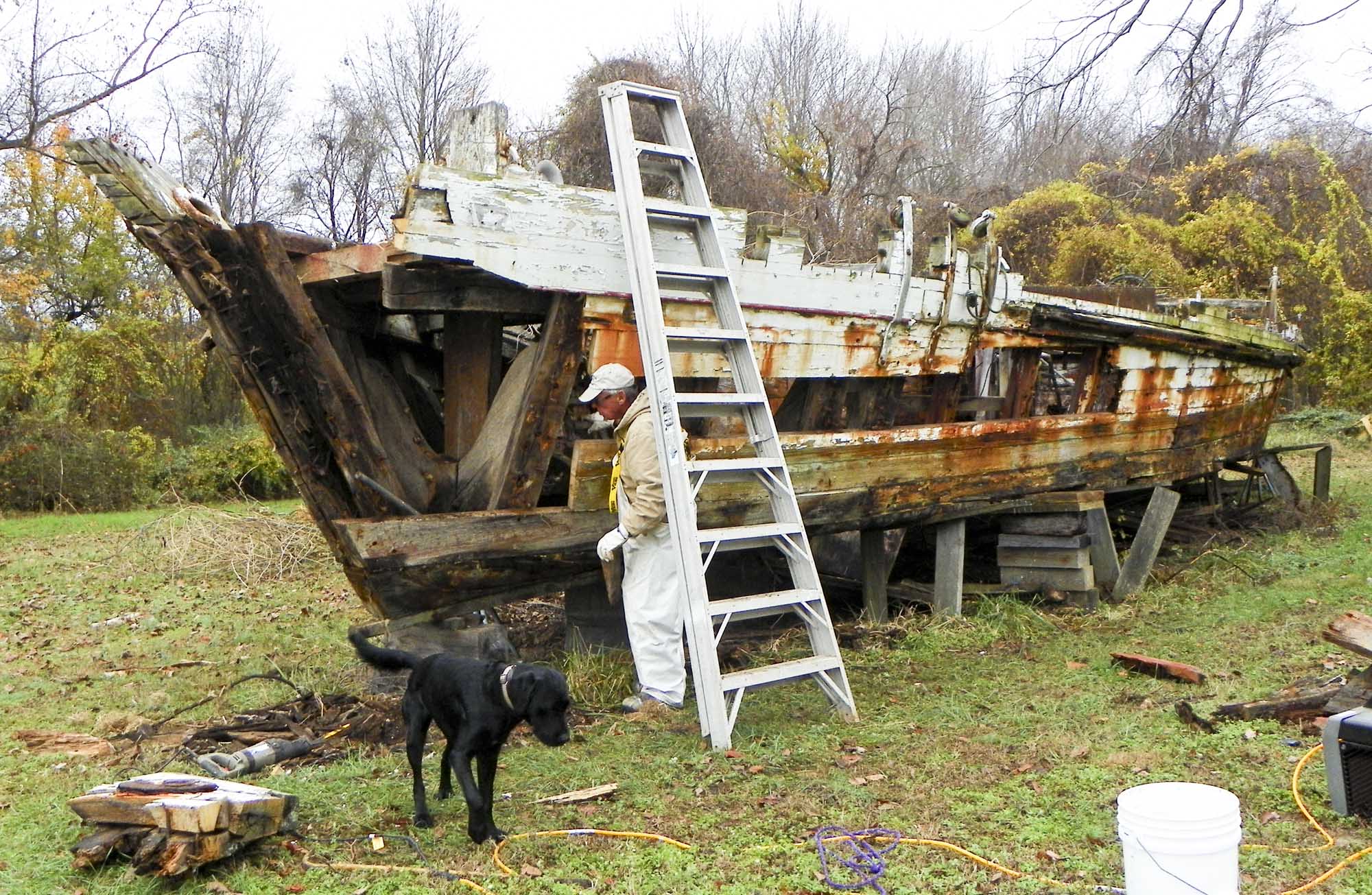 He said, "You don't own these boats. They own you and put you in the grave and then wear somebody else out." Mamie A. Mister had "owned him" for more than fifteen years, and he was determined to have her restored and back in the water by her 100th birthday. "That boat gives me a reason to get up in the morning," he said. He would have her lifted onto a steel frame "to get her straight," then start rebuilding, estimating that he would replace about ninety percent of the boat's timbers with pressure-treated loblolly pine.