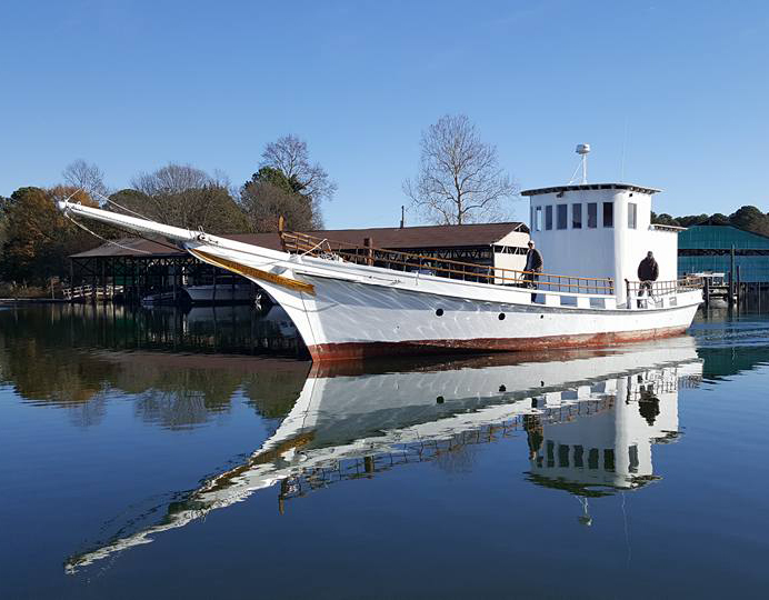 Since her conversion, Oyster Catcher has been serviced on the Jordan Marine railway at Gloucester Point, Virginia, so the marina owners, Charles Duke II and Julie Ann Hedrick, were well familiar with the boat. But in recent years, there had been little maintenance done on Oyster Catcher, and she had been sitting idle at the marina. Duke and Hedrick approached the owners and in December 2015 bought the boat.